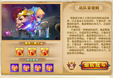 搭配战队系统推出的一种全新的竞技匹配模式战队赛第一赛季正式来袭。这是一个更能体现战队凝聚力的比赛模式,这是一个更能展示战队个人实力的比赛模式,这是一个采用天梯排位匹配机制的比赛模式。谁才是真正的大神,哪只战队才是最强战队,只有在真正的战场上征战过才会见分晓。