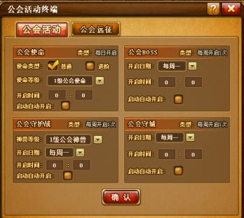 会守护战/公会守城),并可自由设定相关公会活动的开启时间;