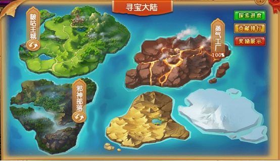 B. 目前开通探索区域依次为:啵咕王城,邪神部落,蒸汽工厂